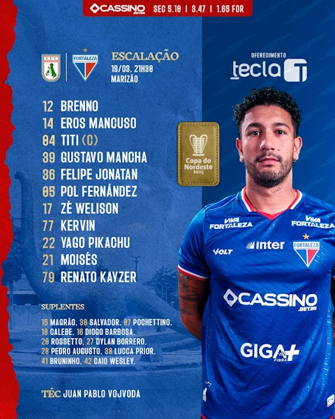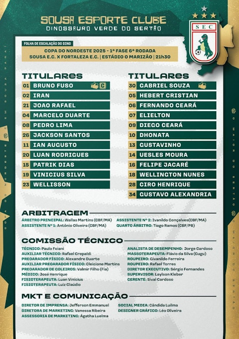 Sousa 2×1 Fortaleza, Copa do Nordeste, no estádio Marizão, às 21h30, na cidade de Sousa. A bola rolando para sousenses e tricolor do Pici, valendo três pontos, pela competição regional.