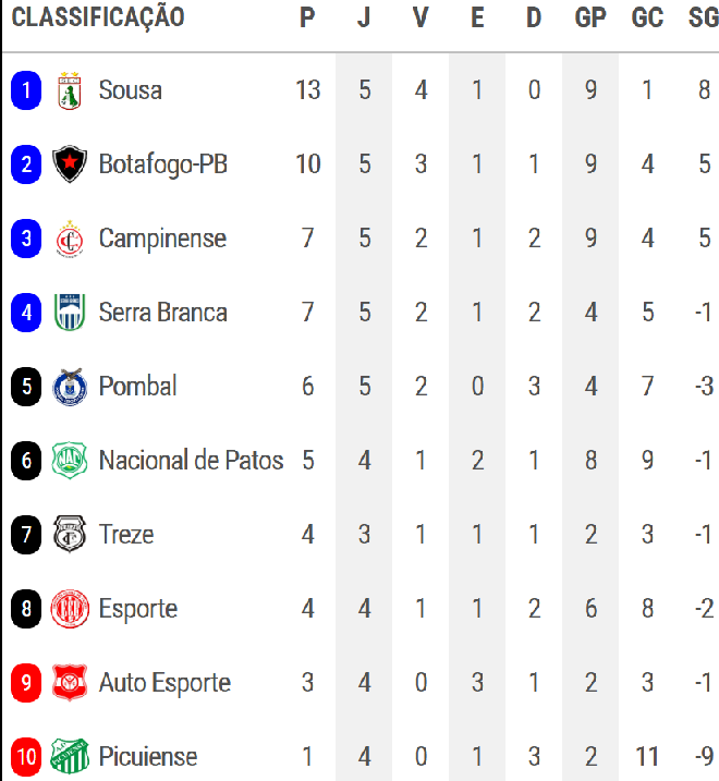 O Sousa com a vitória sobre o Campinense por 2 a 0, nesta quarta-feira (29), no estádio Marizão, fica cada vez mais isolado na liderança do Campeonato Paraibano da Primeira Divisão de 2025, com 13 pontos. Renda – R$ 34.360,00 Público – 2.211