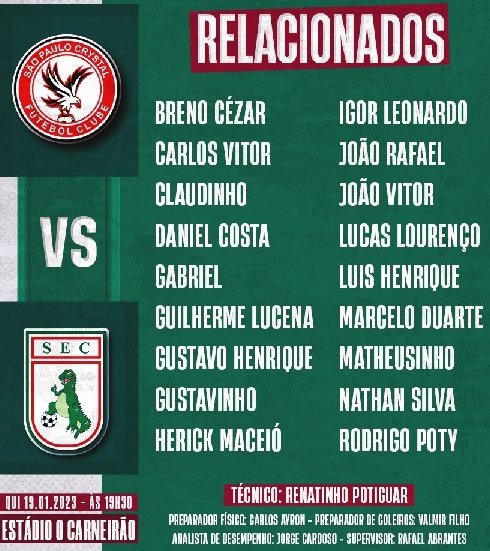 O treinador Renatinho Potiguar relacionou 18 jogadores para esta partida, considerada decisiva para o time sousense. Em duas rodadas, o Dinossauro acumulou quatro pontos, com uma vitória e um empate.