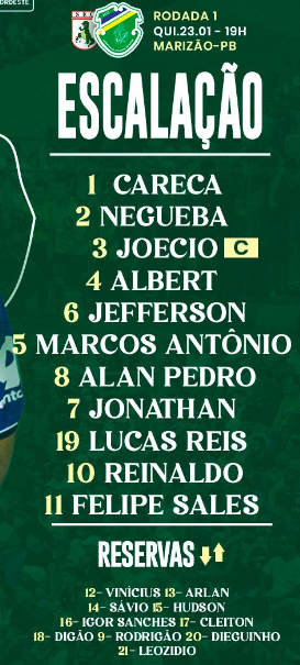 O adversário na partida de estreia Altos-PI, às 19h, no estádio Marizão, em Sousa. O time do Dino chega à competição regional robusto por vencer as três partidas que disputou no Certame Paraibano.