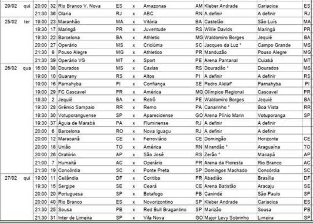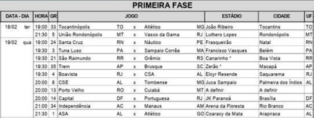 O Sousa tem estreia programada na Copa do Brasil para o próximo dia 27, contra o Bragantino-SP, no estádio Marizão, em Sousa. Enquanto, o Botafogo-PB vai atuar também no dia 27, contra a Portuguesa-SP, no estádio da Canindé, em São Paulo.