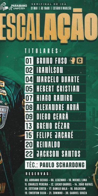 Sousa 2×1 Treze, em jogo pela fase final do Campeonato Paraibano de 2024. O duelo de Dino e Galo aconteceu, neste domingo (31), no estádio Antônio Mariz, às 16h, na cidade de Sousa.