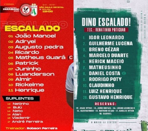 O Sousa faz seis pontos em dois jogos fora de casa, e um jogando em Sousa. Agora, o time Dino volta a campo nesta quarta (25), às 19h30, diante do Campinense na Bombonera do Sertão. A proposta é para buscar a vitória diante do nosso torcedor e manter a primeira colocação no Paraibano.