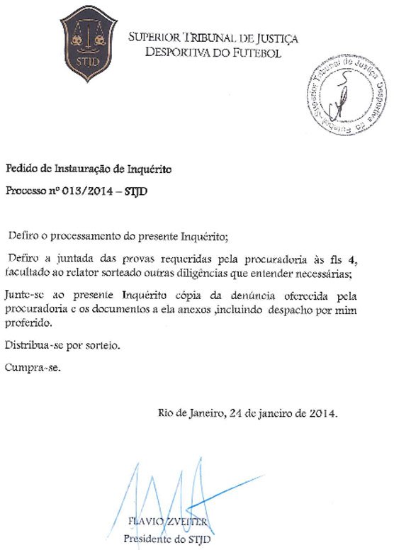 Por determinação do presidente do Superior Tribunal de Justiça, Paulo Zveiter, o processo envolvendo a confusão torcedores na partida entre Botafogo 1×1 Sport Recife, pela Copa do Nordeste de 2014, que será mais julgado nesta quarta-feira, entra em diligência. Uma nova dada deve ser definida para apreciar os fatos.
