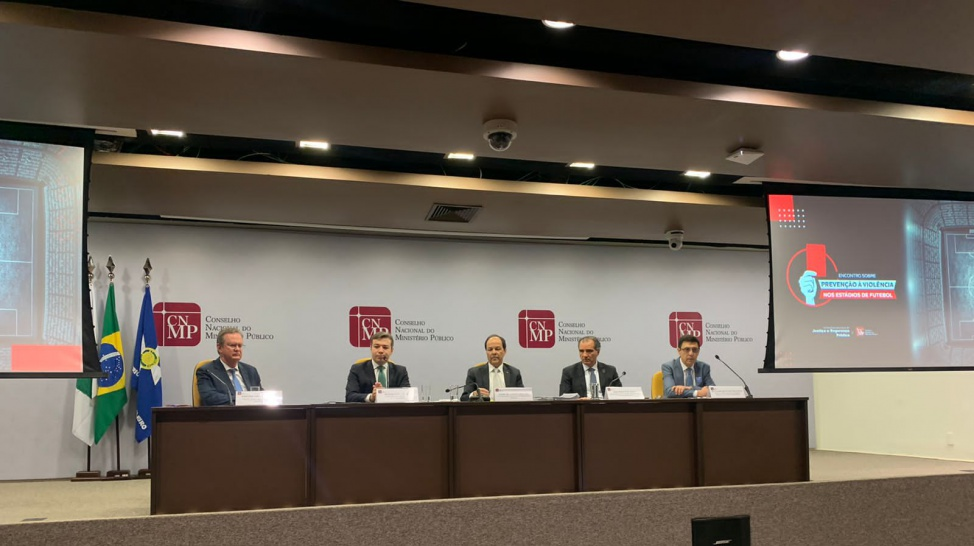 Membros do STJD participaram na manhã desta terça-feira (29) de encontro sobre “Prevenção à Violência nos Estádios de Futebol”, promovido pelo Conselho Nacional do Ministério Público (CNMP). O presidente do STJD, José Perdiz de Jesus, o procurador-geral, Ronaldo Botelho Picante, e o auditor de Comissão Disciplinar, João Rafael, marcaram presença no evento que teve como objetivo discutir possíveis soluções sobre o tema.