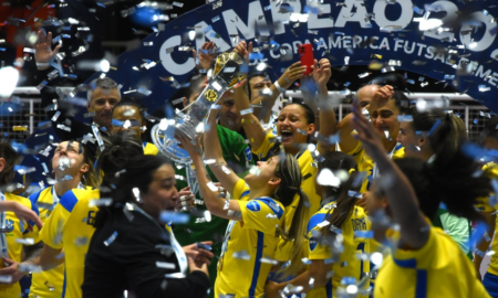 Seleção Feminina de Futsal derrota Argentina por 2 a 0, em Buenos Aires, e conquista pela sétima vez o torneio continental. Informação...