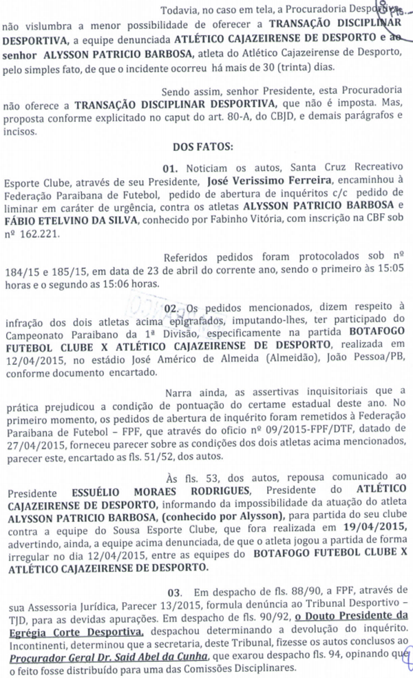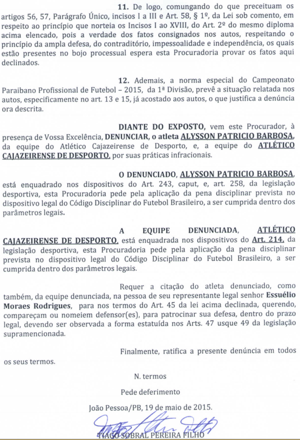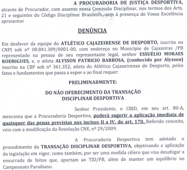 FutebolTJD oferece denúncia em desfavor do Atlético Compartilhar Tweetar Compartilhar Compartilhar Email ComentáriosO procurador Tiago Sobral Pereira Filho do Tribunal de Justiça Desportiva da Paraíba oferece Denúncia em desfavor do Atleta Alysson Patrício Barbosa e da Equipe do Atlético Cajazeirense de Desporto. Notícias Relacionadas: Compartilhar Tweetar Compartilhar Compartilhar Email Clique para comentarDeixe um Comentário Cancelar respostaO seu endereço de e-mail não será publicado. Campos obrigatórios são marcados com *Comentário *Nome * E-mail * Site Salvar meus dados neste navegador para a próxima vez que eu comentar. ΔEsse site utiliza o Akismet para reduzir spam. Aprenda como seus dados de comentários são processados.