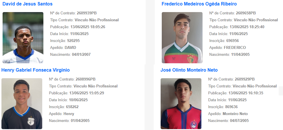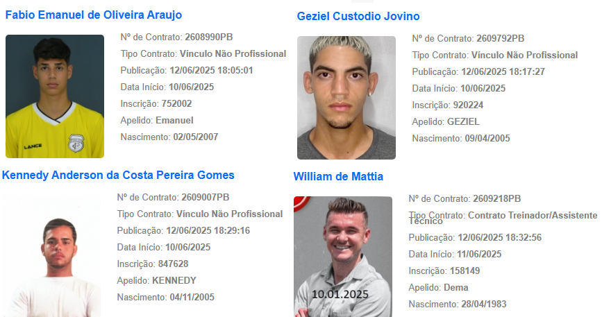 O nome do treinador William de Mattia foi publicado nesta sexta-feira (13) no boletim informativo diário da CBF. Com isso, o ele já está regularizado para comandar o Treze em competições oficiais. Além de De Mattia foram publicados no BID os nomes de vários jogadores que vão atuar com a camisa do Galo no Campeonato Paraibano Sub-20 de 2025.