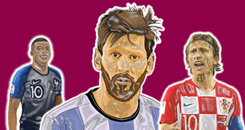 Três camisas 10, terminaram nas três primeiras posições dos melhores jogadores das Copa do Mundo do Catar.