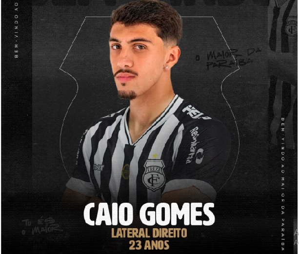 Caio Gomes – O Treze Futebol Clube anuncia a contratação do lateral-direito Caio Gomes para a temporada 2026. Natural de Curitiba-PR, o jovem de 23 anos atua como lateral nos dois lados do campo, sendo o direito predominante. Revelado pelo São Joseense-PR, também atuou no Paranavaí-PR, no Chornomorets da 1ª divisão da Ucrânia e no Brusque-SC, de onde chega por empréstimo e onde disputou o Campeonato Brasileiro Série C deste ano.