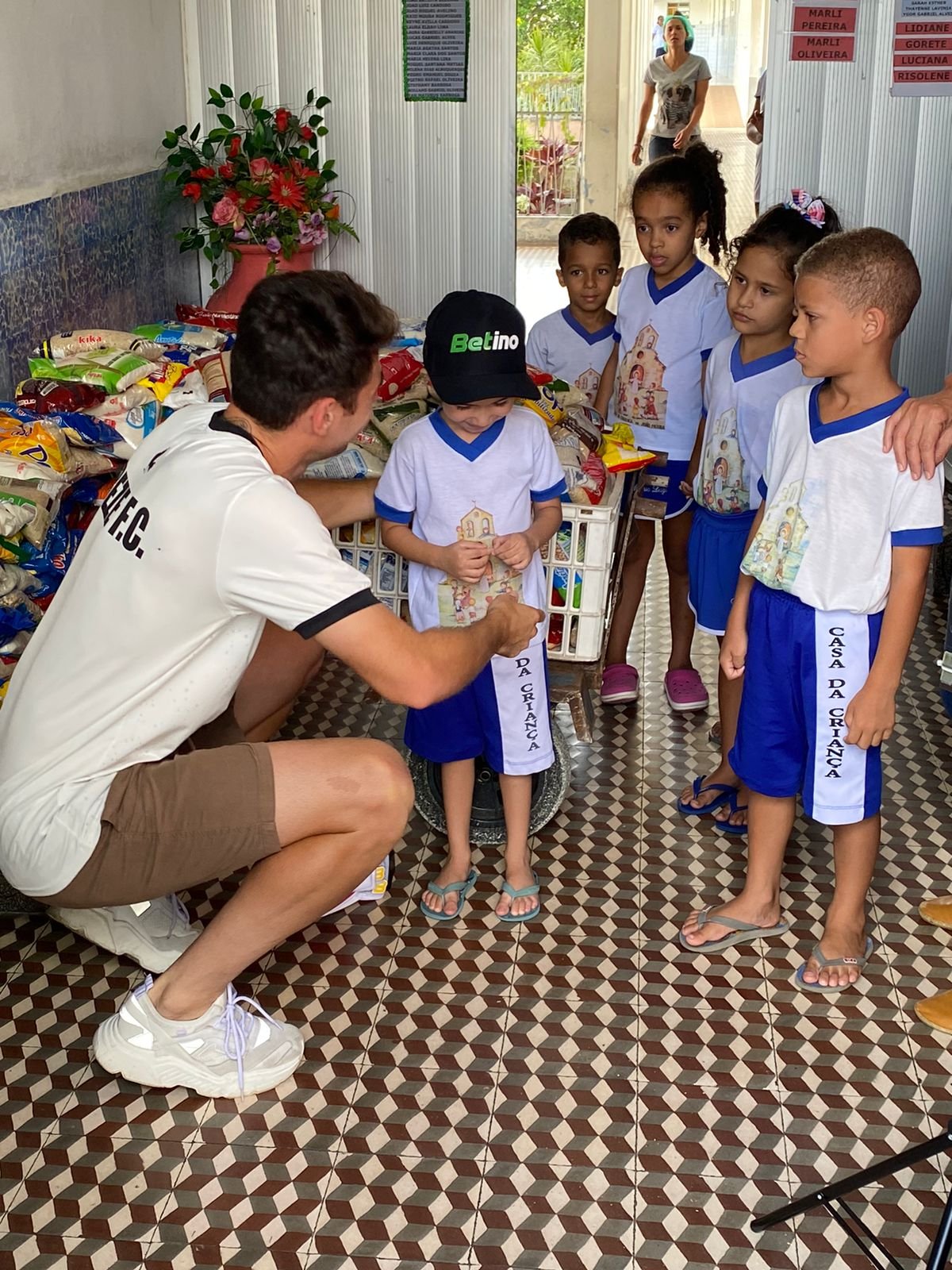 Nesta segunda-feira (27) pela manhã, os atletas Roberto e Yamada, o diretor de marketing e negócios Cláudio Killa e o diretor de patrimônio Rodenbusch Neto entregaram parte dos alimentos na Casa da Criança Dr. João Moura.