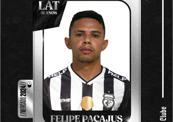 O Treze confirma o lateral de 31 anos, Felipe Pacajus. Ele anunciado para a sequencia da temporada 2024. Felipe Alysson Batista da Silva é natural de Pacajus-CE, e iniciou sua carreira no clube da cidade, o Pacajus Esporte Clube. Acumula passagens também por Horizonte-CE, Maranguape-CE, Americano-RJ, Atlético-CE, Ypiranga-PE e Parnahyba-PI. Seu último clube foi o Afogados da Ingazeira-PE.