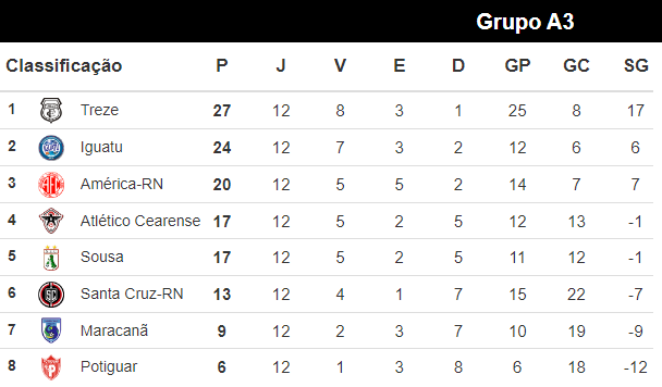 O Grupo A3 caminha para ser concluído no Campeonato Brasileiro da Série D. O Treze e Iguatu-CE estão classificados para a próxima fase. As outras duas vagas estão sendo disputadas por quatro equipes: América de Natal-RN, Atlético Cearense-CE, Sousa e Santa Cruz-RN.