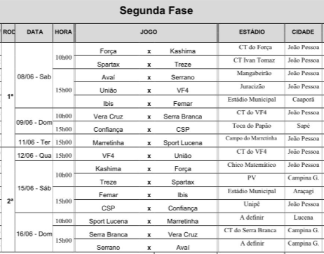 Sábado, 08/06, às 10h, no CT Ivan Tomaz, em João Pessoa/PB.