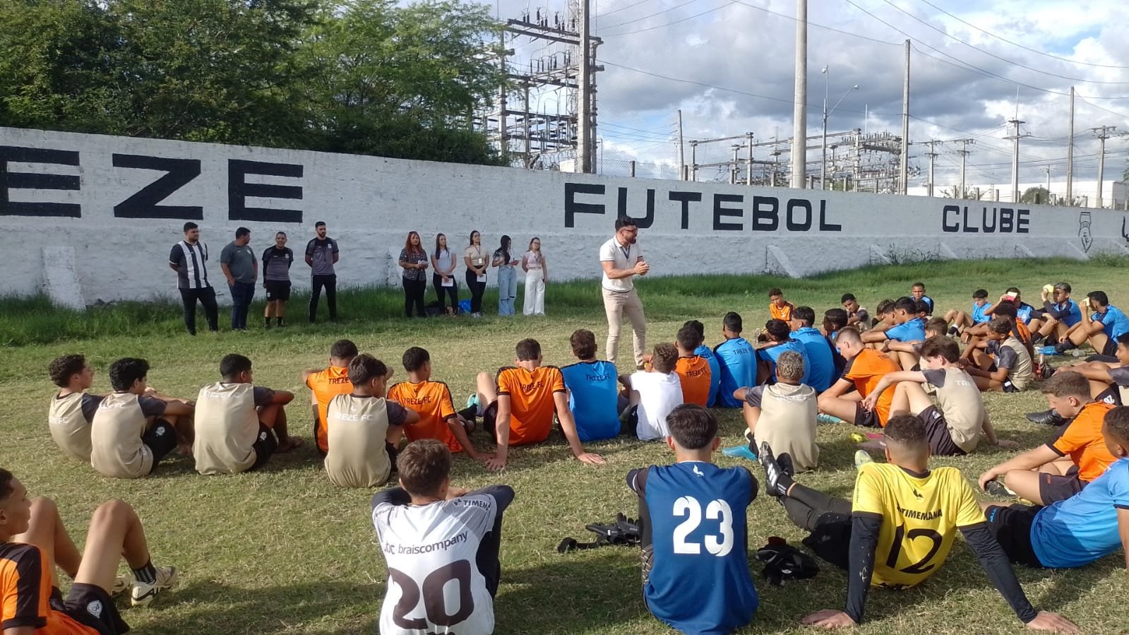 Gutemberg conduziu a palestra com o auxílio de mais duas profissionais, promovendo um espaço de reflexão e ação com brincadeiras lúdicas para que os atletas pudessem compreender o que é o racismo e como ele vem sendo tratado no meio do futebol.