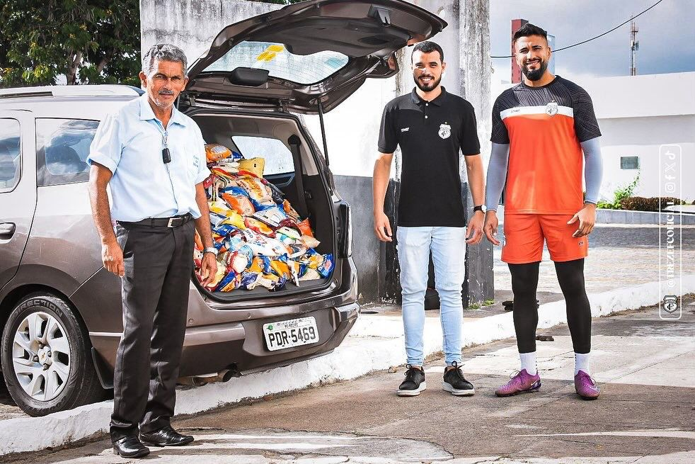 Durante a entrega, o capitão Rayan e o supervisor de futebol, Roberto Silva, representaram o clube, demonstrando o comprometimento do Treze Futebol Clube com ações solidárias e comunitárias.