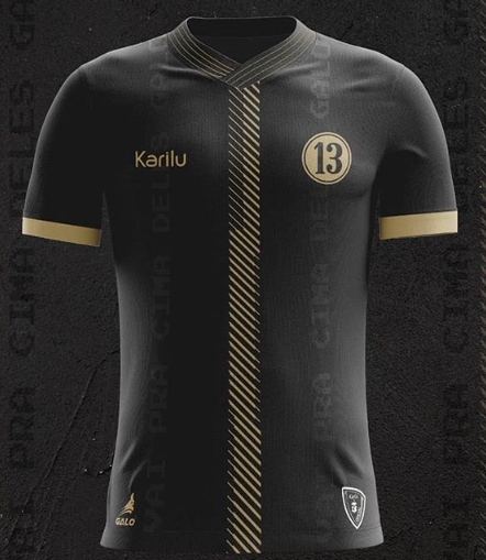 A camisa, produzida pelo seu fornecedor de material esportivo oficial, a Karilu, é majoritariamente preta, com alguns detalhes dourados. O escudo é aquele da época da reunião entre Antônio Fernandes Bióca e mais doze pessoas, numa simples casa em Campina Grande, onde se fundava o Treze Futebol Clube.