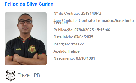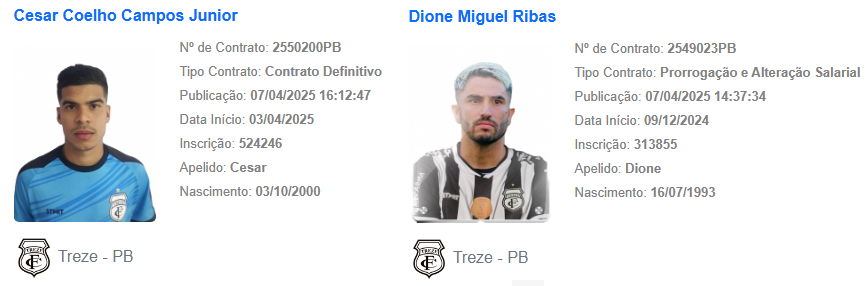 O Treze oficializou a prorrogação do contrato do meio-campista Dione Ribas. O jogador vai ficar no Presidente Vargas até o fim do Campeonato Brasileiro da Série D. Além do nome de Dione Ribas, saíram ainda no boletim informativo diário da CBF, a regularização do meia Cesinha e o treinador Felipe Surian.