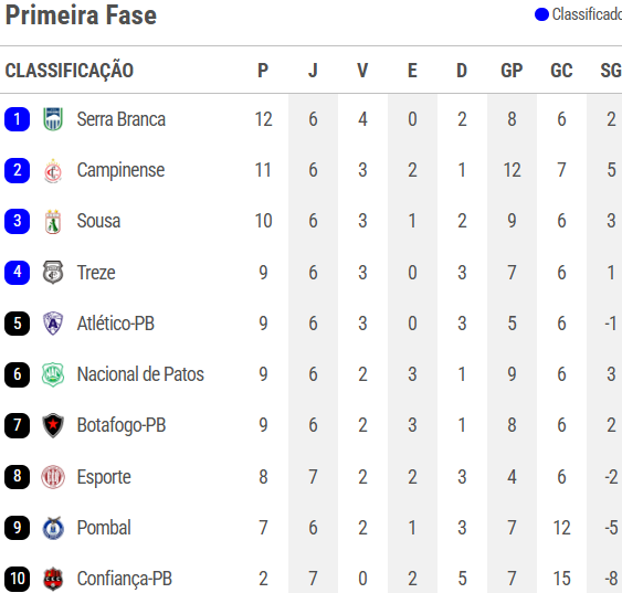 Treze x Campinense, neste domingo (8), no estádio Amigão, às 18h, em Campina Grande, pela sexta rodada da primeira fase do Campeonato Paraibano da Primeira Divisão de 2026. Fim de jogo. O Campinense chega aos 11 pontos e assume a vice liderança do Campeonato Paraibano de 2026.