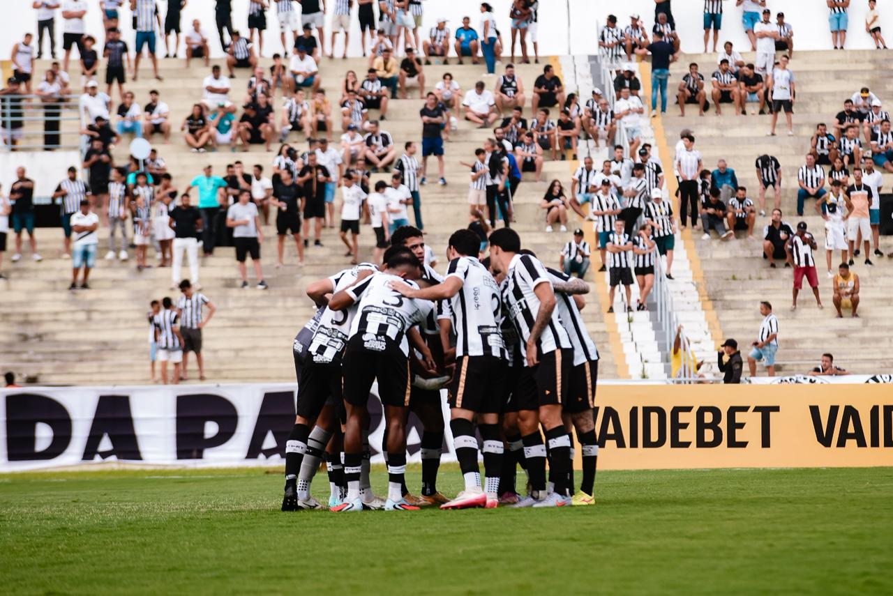 Fim do primeiro tempo com a vitória parcial do Treze, por 2 a 0, com gols de Vinícius Bala e Jeancarlo.