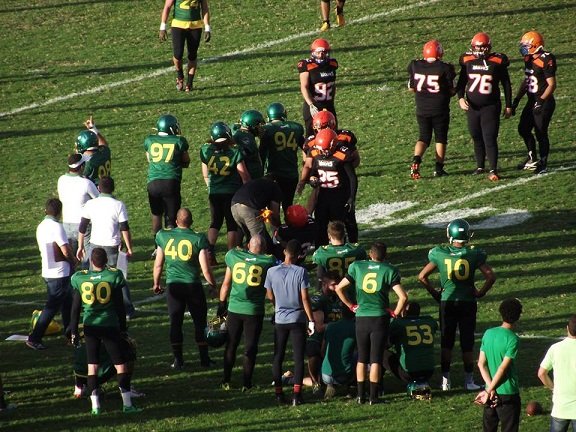 Tropa Campina/UEPB na partida vencida por 15×0 diante do Wolves de Caruaru, pelo São João Bowl, disputada na cidade de Campina Grande.