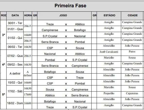 28 de janeiro – 16h – Botafogo-PB x CSP (Almeidão)
