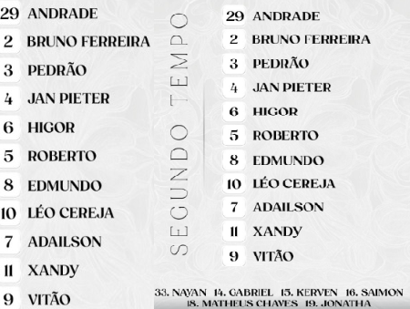 Suplente no 2º tempo: Vitão (Zagueiro)
