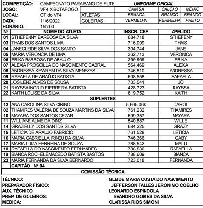 Jogo único o VF4 derrotou o Botafogo-PB por 5 a 0, neste domingo (6), no CT das Panteras, na praia do Sol. Fase semifinal do Campeonato Paraibano de futebol feminino. Lú Meireles marcou dois gols, Zayra, Thalita e Deborah.