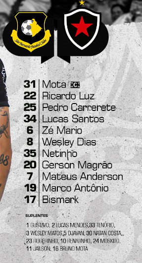 O atleta Vitinho se encontra no departamento médico e por isso não foi relacionado para a partida, mesma condição do atleta Willian Kaefer